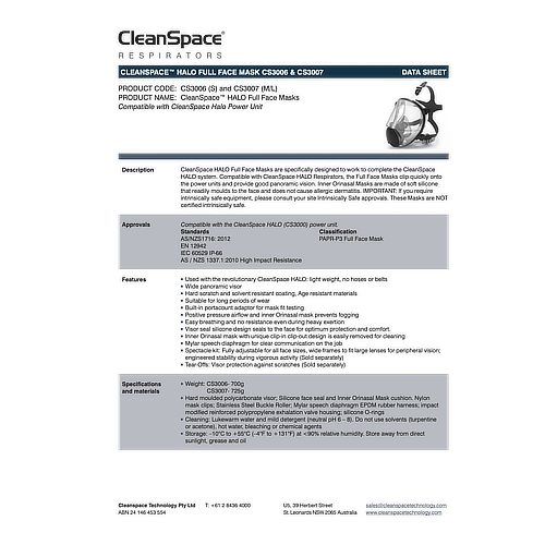 • Certified for use with Half Mask and Full Face Mask