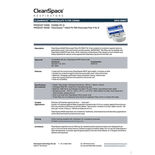 • Compatible for use with CS particulate filters, providing 99.97% filtration efficiency